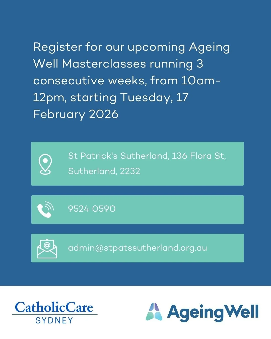Mark the date: Thurs 22nd Jan, 9.30am following the 9am Mass. All Seniors welcome!